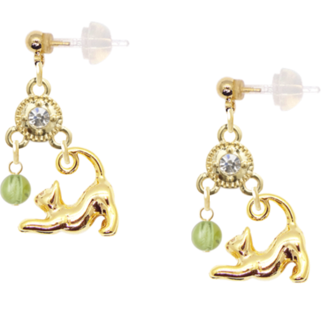 ・このピアスは、愛らしい猫のデザインに緑色の天然石が特長で、多様なファッションに調和しやすく、サイズはフリーで多くの方にお楽しみいただけるよう設計されています。