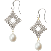 エレガントなフックデザインに、繊細なレースデザインダイヤと美しい淡水パールが融合したこのピアスは、耳元に華やかさと上品さを添えます。ロジウム製のカーブピアスフックが柔らかな輝きを放ち、特別な魅力を引き立てることでしょう!