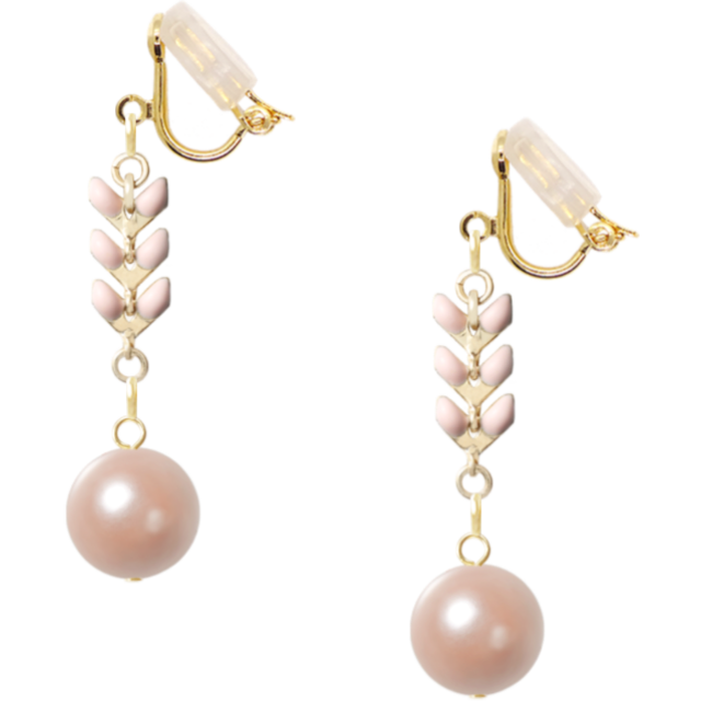 ・このイヤリングは、リーフチェーンのピンクとブロンズピンクの樹脂パールが特長で、さまざまなファッションに調和しやすく、サイズはフリーで多くの方にお楽しみいただけるよう設計されています。