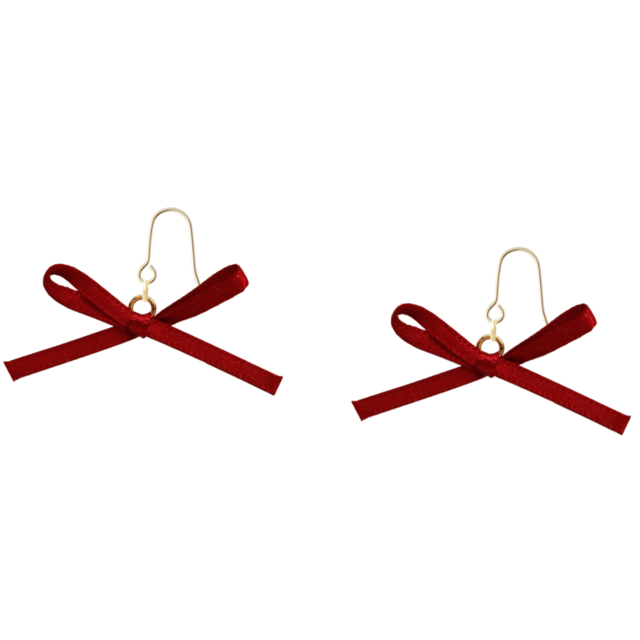 Y2K レッド両面サテンリボンのフックピアス「Fleur Charmant」(No141)