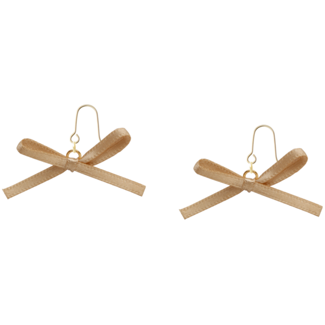 Y2K ベージュ両面サテンリボンのフックピアス「Fleur Charmant」(No144)