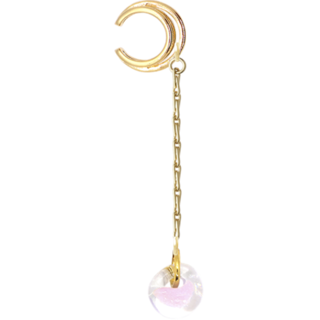 ・このイヤカフはゴールドカラーと立体ドロップデザインチェーン、ガレスビーズが美しく調和し、耳元に特別な魅力をもたらします。