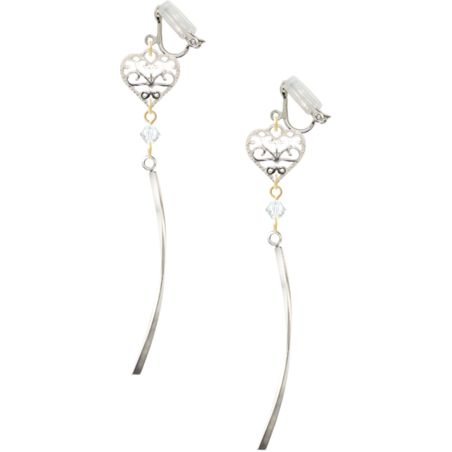 ・このイヤリングはシルバーのハートチャームとウェーブメタルバーが美しく調和し、耳元に特別な魅力をもたらします。