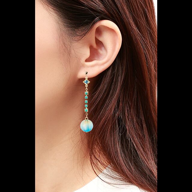 ・スワロフスキー(アクアマリン):透明感のあるアクアマリンが、清らかで涼しげな印象をもたらし、耳元を引き立てます。