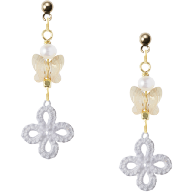 天然淡水パールとタティングのピアス「Fleur Charmant」(No206)