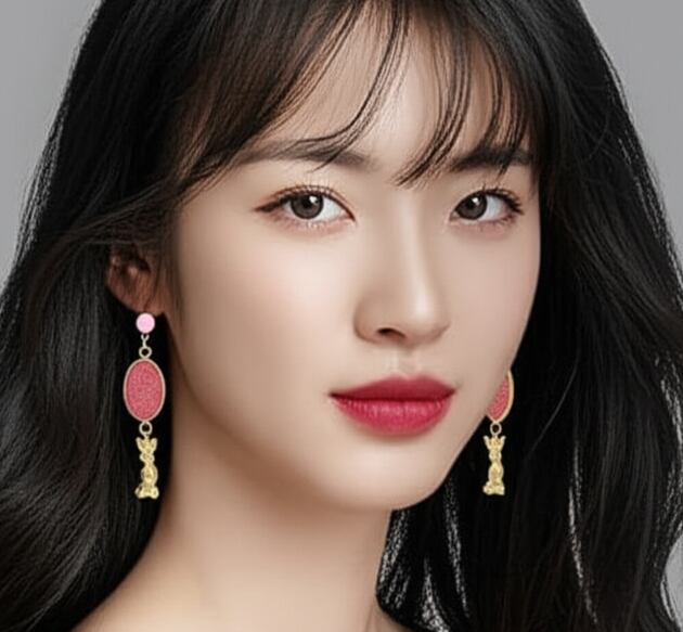 この「Fleur Charmant」のピアスは、鮮やかなピンクのチタン素材とフィッシュレザーのオーバルデザイン、リアルなウサギチャーム(ゴールド)が絶妙に組み合わさったアイテムです。耳元で華やかに揺れ、デイリーユースからお出かけシーンまで幅広くお楽しみいただけます!