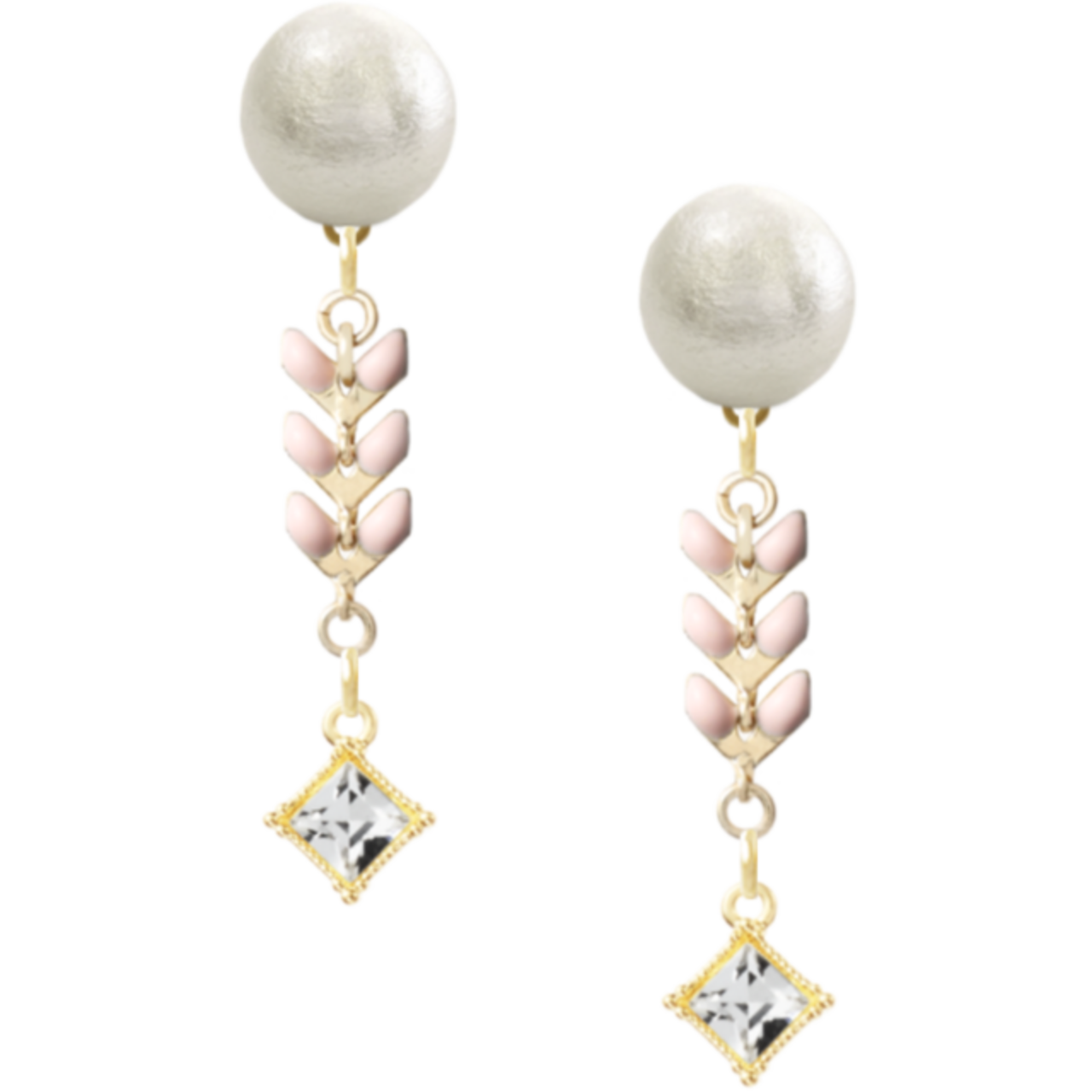 この「Fleur Charmant」のピアスは、スワロフスキースクエアクリスタルの煌めきとエレガントなリーフチェーン、さらに美しいコットンパールが絶妙に組み合わさったアイテムです。耳元で華やかに揺れ、デイリーユースから特別なシーンまで幅広くお楽しみいただけます!