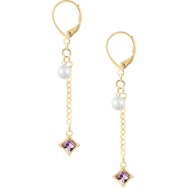 ・このピアスはスワロフスキーライトアメジストと淡水パールの組み合わせにより、耳元に特別な輝きをもたらします。