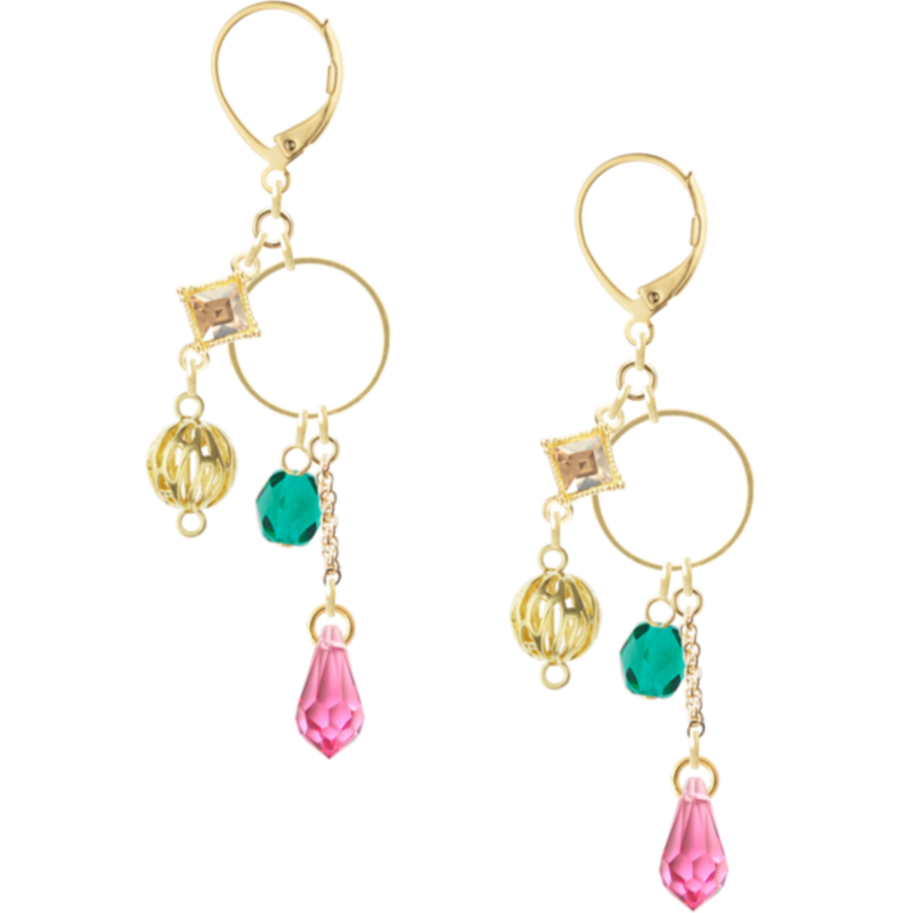 この「Fleur Charmant」のピアスは、スワロフスキーのローズとスクエア、透かしデザインのボール、さらにチェコビーズのエメラルドを使用した、洗練されたアクセサリーです。耳元で優雅に揺れ、日常から特別なシーンまで、さまざまなスタイルにフィットします!