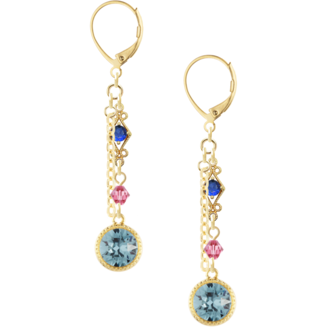 この「Fleur Charmant」のピアスは、スワロフスキーのローズとラウンド、そしてブルーのダイヤデザインコネクターを使用した、洗練された華やかさを持つアクセサリーです。耳元で優雅に揺れ、カジュアルから特別なシーンまで、様々なスタイルにフィットします!