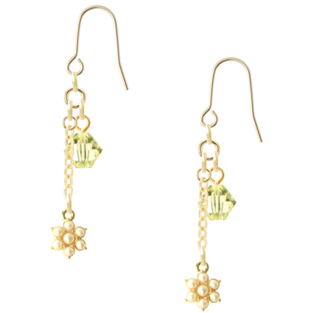 ・スワロフスキー ジョンキル(6mm):輝くジョンキルカラーのスワロフスキーが、耳元に美しい煌めきを与え、特別な存在感を放ちます。
