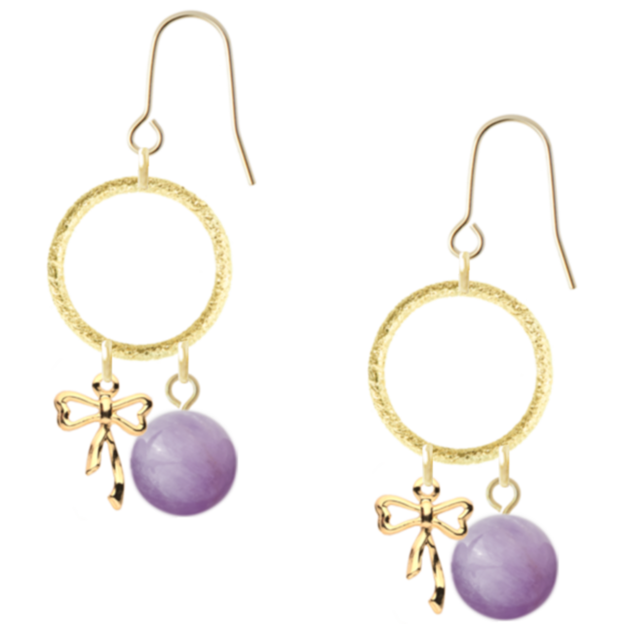 ・このピアスは、天然石ラベンダーアメジストと美しいリボンが組み合わさり、耳元に特別な魅力をもたらします。